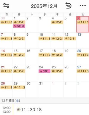 今月の出勤予定~
